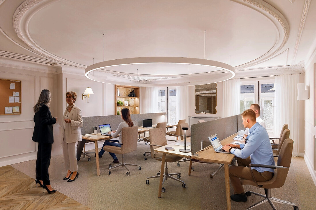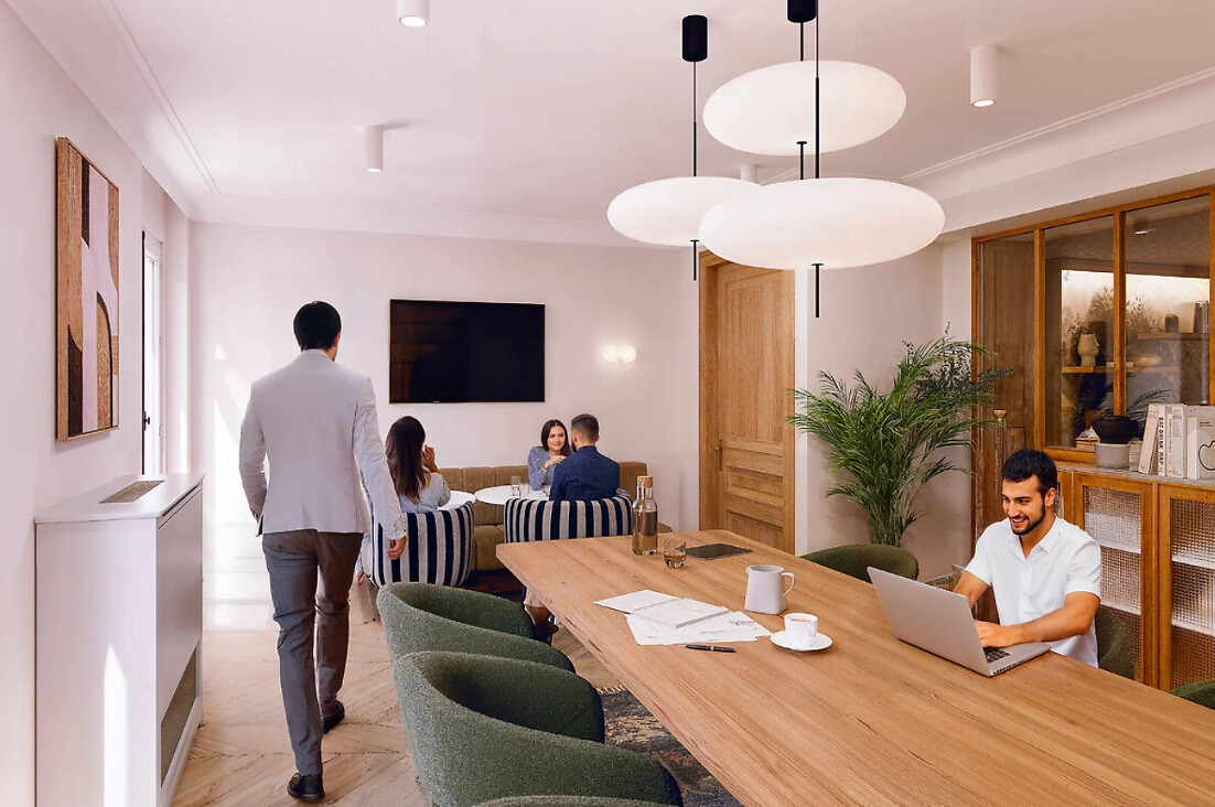 Built in 1878 of ashlar, it was renovated in 2022 to Gecina's high standards for good living, while retaining its original elegance, with ceiling mouldings, generous volumes and high ceilings in the heritage rooms. To meet talent's expectations of comfort and flexibility, we have provided plenty of light and good air quality, with a new heating and air-conditioning system on each floor.