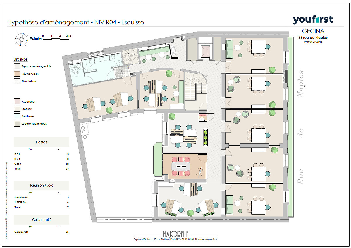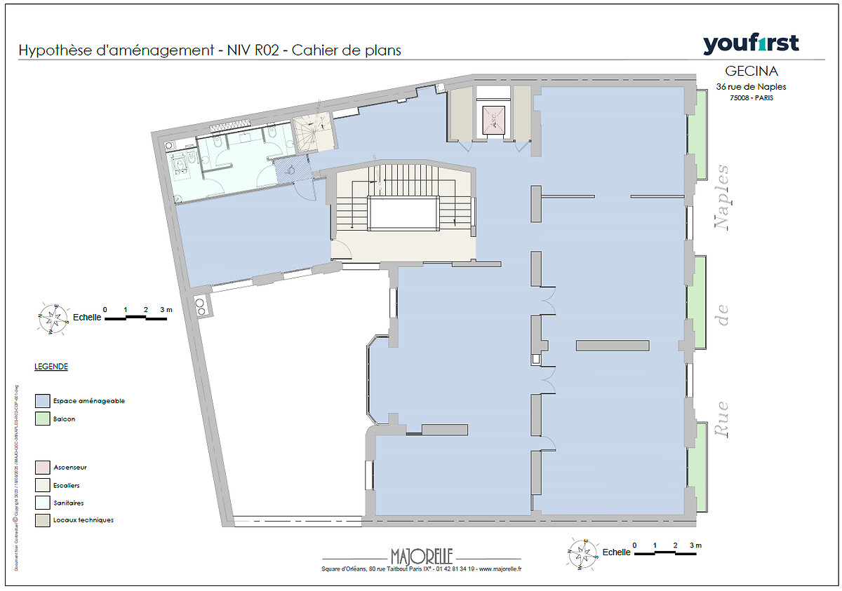 Located in the Saint-Lazare district, one of the most dynamic in Paris, 36 Naples benefits from a lively environment, bustling with shops, restaurants and cultural venues. Just a few minutes from Saint-Lazare station – Paris's main transport hub – the building offers direct access to the capital's major stations, La Défense and Orly airport via lines 14 and E.