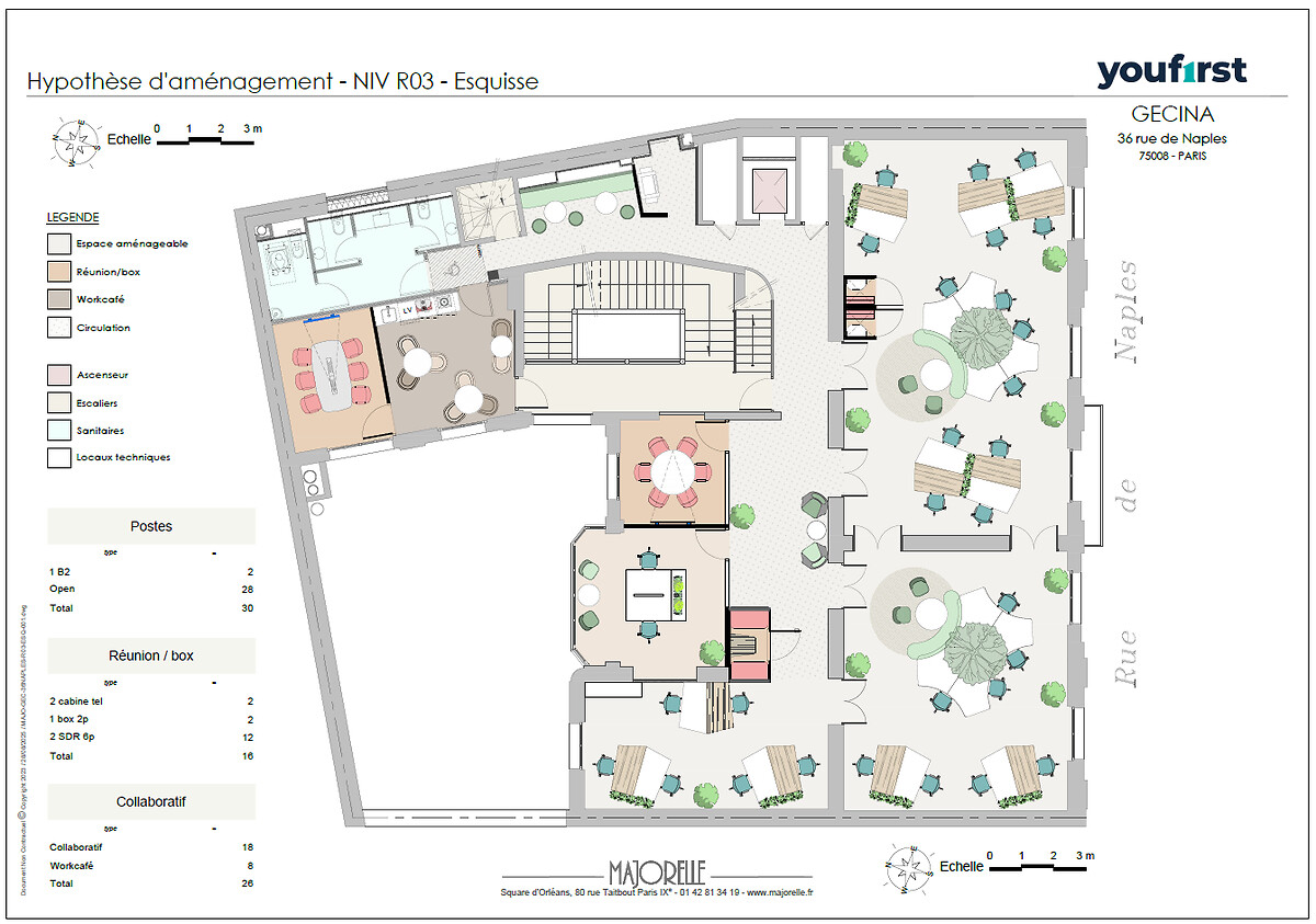 Designed at the end of the 19th century by architect Alfred Coulomb and completely renovated in 2016, 36 rue de Naples combines authentic Parisian heritage with state-of-the-art amenities. Its grand staircase and architectural details complement the bright, open workspaces designed for the comfort of teams.