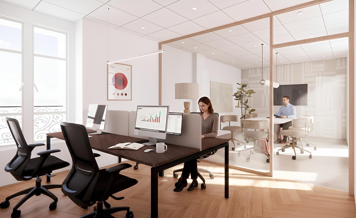 The 48 Montmartre is ideally located in the heart of Paris, close to the Grands Boulevards, iconic theaters, and just steps away from Les Halles. These 173 m² office spaces on the 2nd floor of a 7-story Haussmannian building, with 3-meter-high ceilings, are bathed in abundant natural light. You can enjoy an unobstructed view of Rue Tiquetonne, offering an exceptional work environment and immediate proximity to numerous shops, restaurants, and cultural venues.
