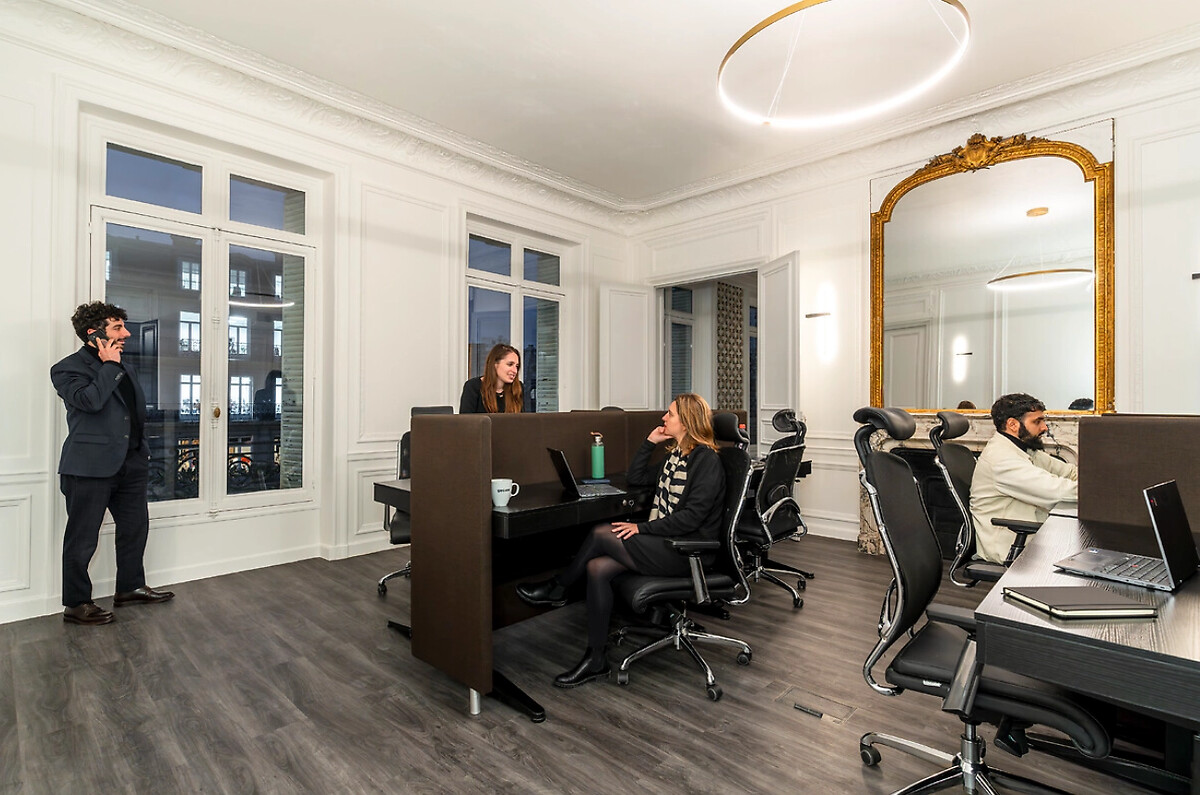 Les plateaux proposés sont spacieux, flexibles, et baignés de lumière naturelle, avec une hauteur sous plafond de 3,3 mètres pour une sensation d'ouverture et de confort. La rénovation de qualité met en valeur les détails architecturaux d'époque : moulures, parquet en point de Hongrie, et cheminées côté boulevard. L'élégance des halls d'entrée en marbre rouge, les trois cours intérieures en forme de U, et les parties communes soigneusement entretenues sont les autres atouts notables de l’immeuble.