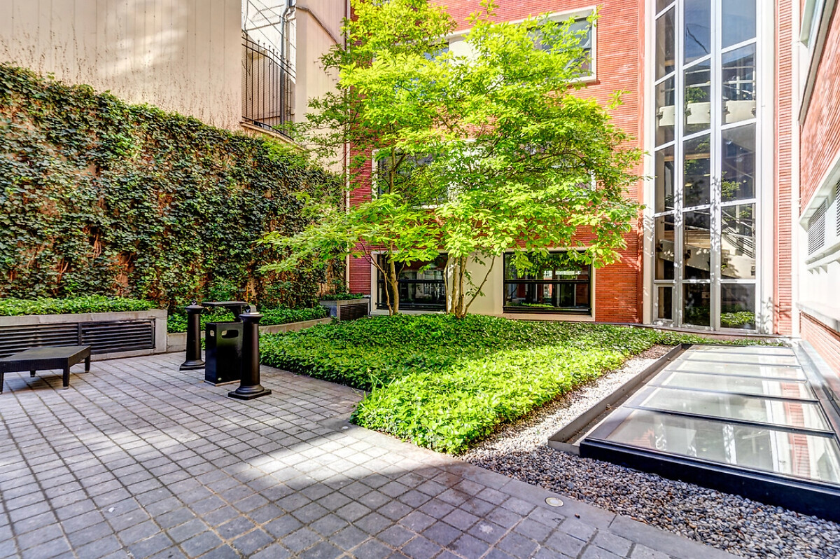 Un cadre végétalisé avec une cour intérieure qui apporte une atmosphère sereine en plein cœur de Paris.