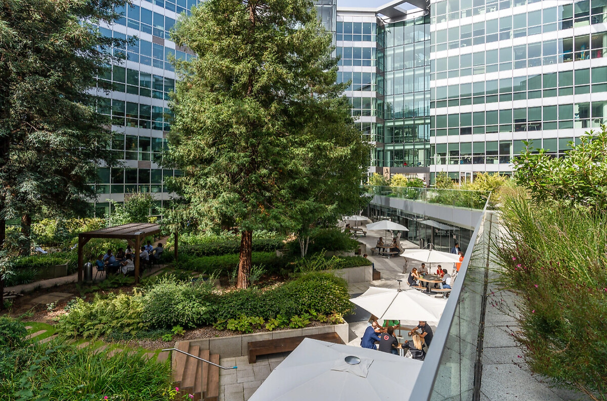 2 500 m² d'espaces verts, dont un jardin intérieur et un parvis desservant les 3 bâtiments.