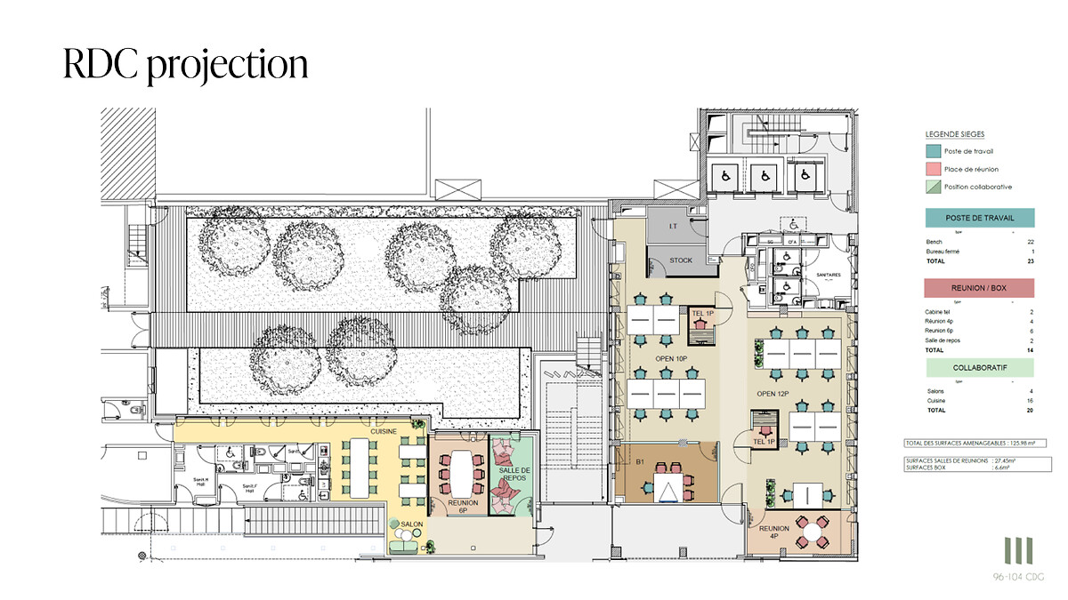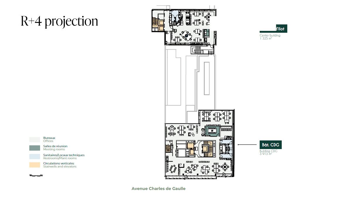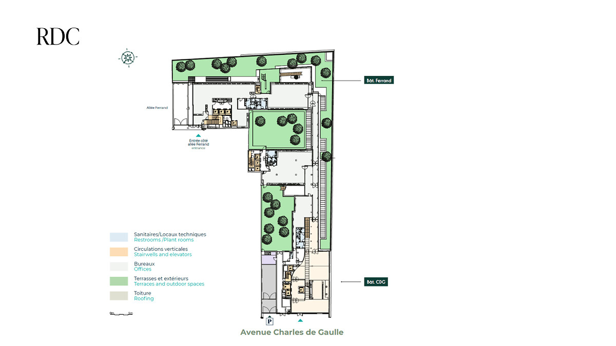 Le 96/104 Charles de Gaulle est conçu pour être un lieu de vie désirable et durable, offrant des espaces flexibles baignés de lumière naturelle et un panel de services pour faciliter le quotidien : restaurant de 250 couverts, cafétéria de 1 000 m², conciergerie avec casiers connectés, et deux quais de livraison pour une logistique fluide. Les collaborateurs sur place bénéficient d’un environnement verdoyant avec 1 350 m² de jardins et de terrasses. Tout est pensé pour offrir une expérience agréable et efficace.