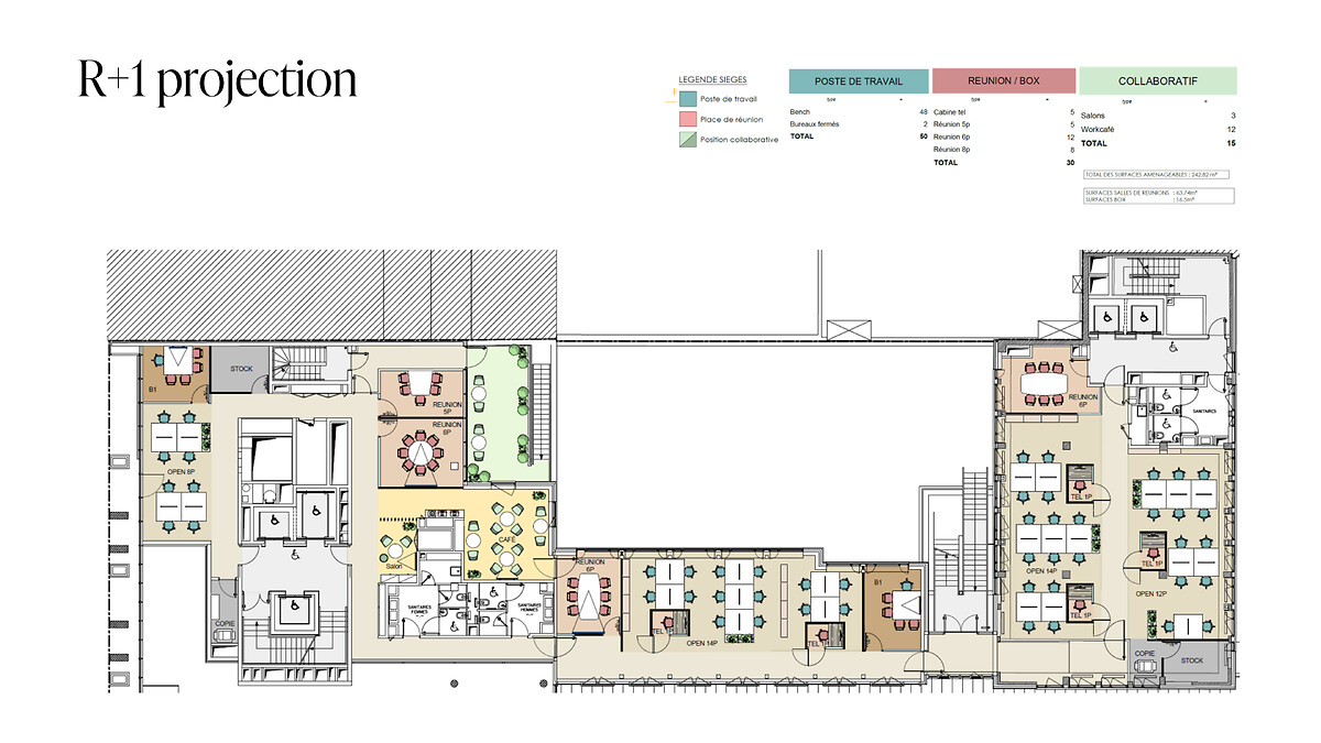 Restauration, événementiel, sport, détente : tout se trouve au même étage. Pas de temps perdu, pas d'étages à changer. Juste un lieu pensé pour fluidifier votre journée, du premier café au dernier workout.