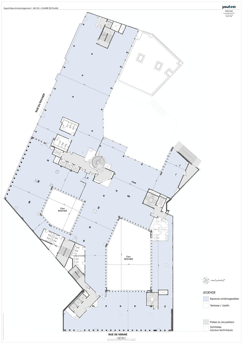 3 000m2 de surfaces extérieures dont 2 500 m² accessibles.
