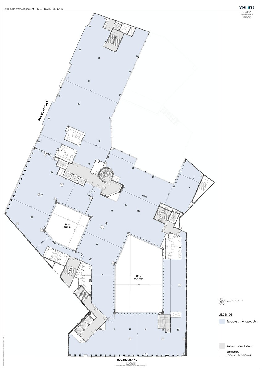 24 700 m² de bureaux répartis sur 8 étages, avec de vastes plateaux modulables jusqu’à 3 300 m². Possibilité d’extension pour 45 000m² avec l’Immeuble 7 Madrid et l’hotel particulier attenant.
