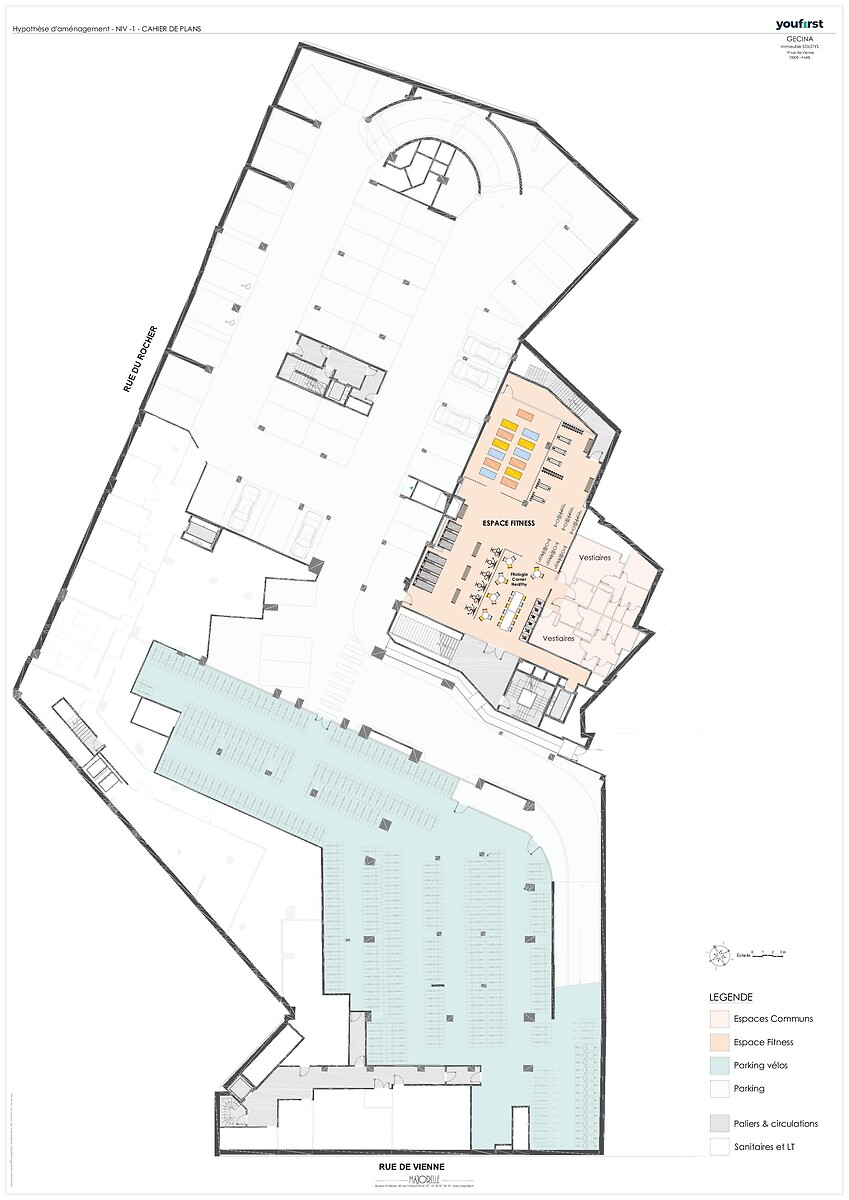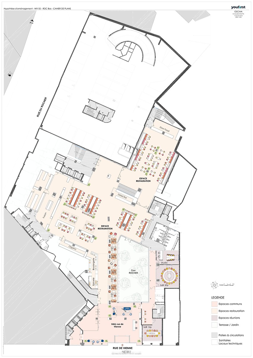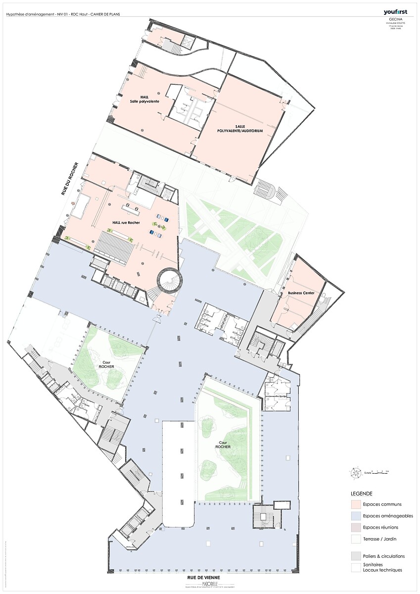 Foodcourt, Workcafé, auditorium, espaces de coworking, Fitness indoor et outdoor, et station vélos.