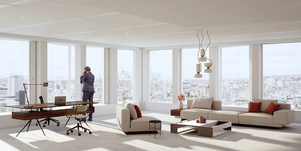 Les plateaux de bureaux de 1 880 m² d’une hauteur sous faux-plafond de 2m70 mètres bénéficient d’une triple-orientation aux vues panoramiques sur la Seine et Paris.