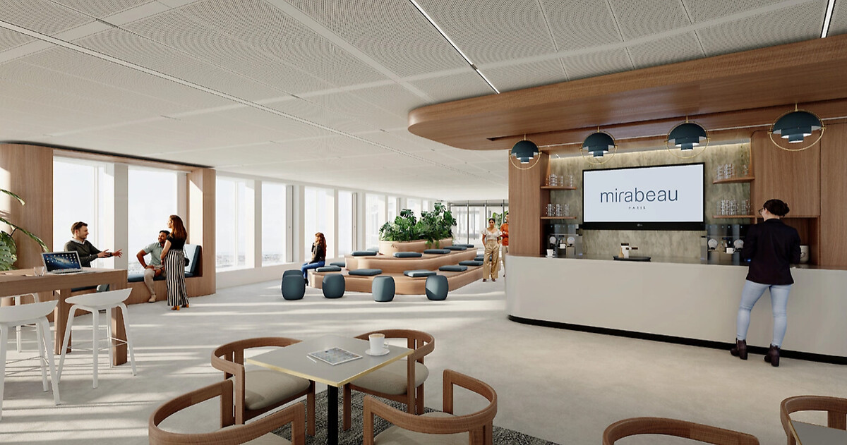Visible et iconique, une nouvelle façade se dessinera bientôt dans l'horizon parisien. Avec l’intégration d’ouvrants de confort en façade et la création d'espaces extérieurs connectées aux plateaux de bureaux, nous ouvrons Mirabeau à son environnement. Tout cela est complété par la création d’un rooftop de 1 340 m² d'espaces extérieurs (dont près de 200 m² accessibles) et végétalisés avec de superbes vues panoramiques sur la Seine et sur le tout Paris