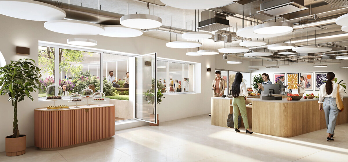 Une palette de nouveaux services : restaurant, Working café et Business center partagées pour les 400 collaborateurs de 27 Canal.