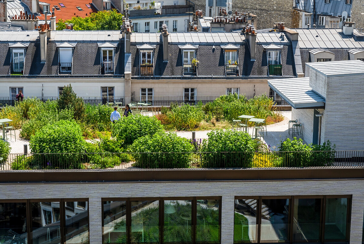 2 800 m² d'espaces végétalisés et accessibles, entre patios, jardins, terrasses et rooftop.